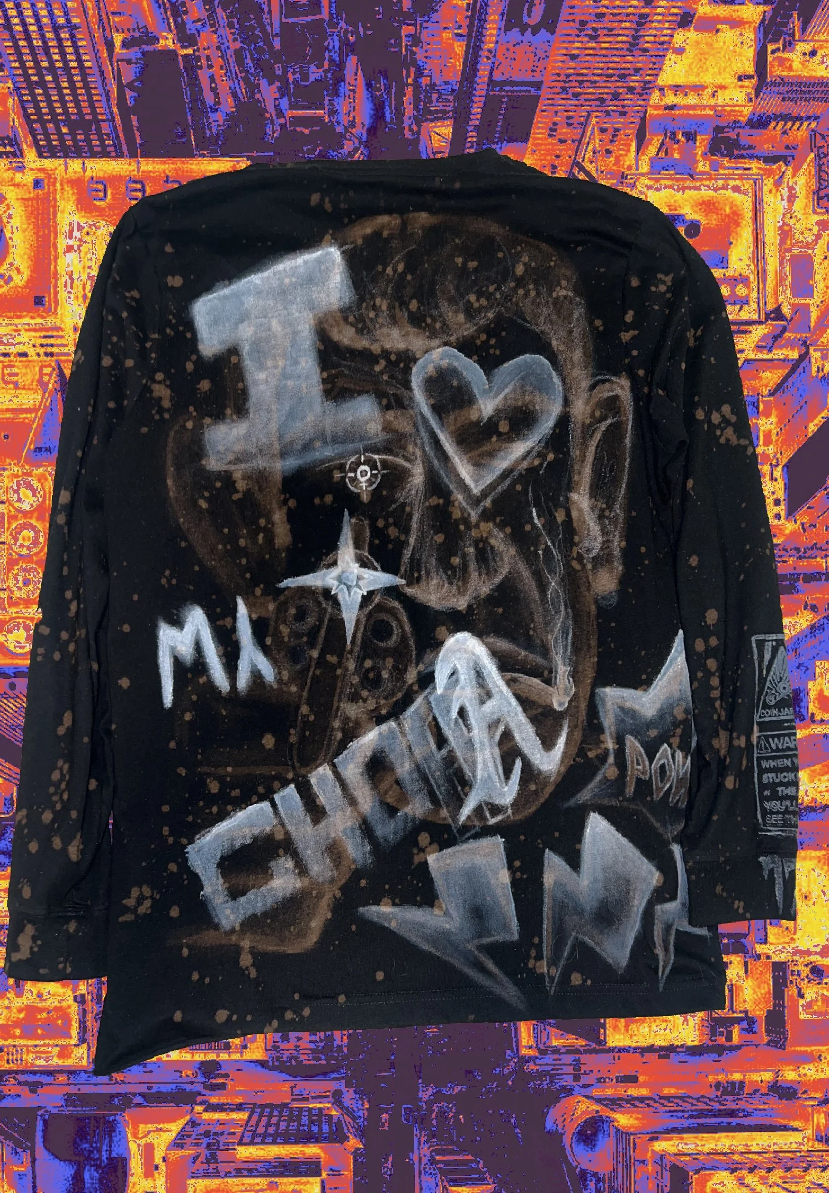 ZUEZ Categories: Select a Category T-Shirt Ink Bleach Sweatshirts Long-sleeves ZUEZ 1 OF 1 T-Shirt Ink Bleach Sweatshirts Long-sleeves Dragon Fragments $200.00 ZUEZ x COIN JAR CORP “I <3 My CHOPPA” Long-sleeve $200.00 ALL MADE BY HAND.BY ZUEZ